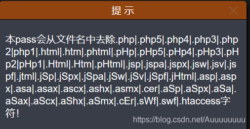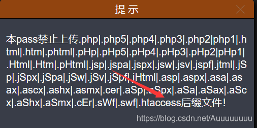 是基于黑名单的方式,这一关利用重写文件解析规则绕过 上传.htaccess文件(基于黑名单)
