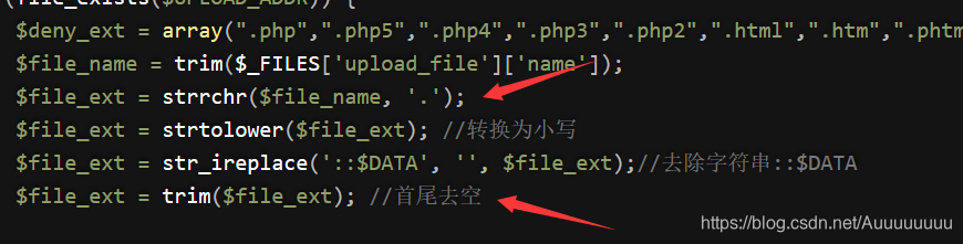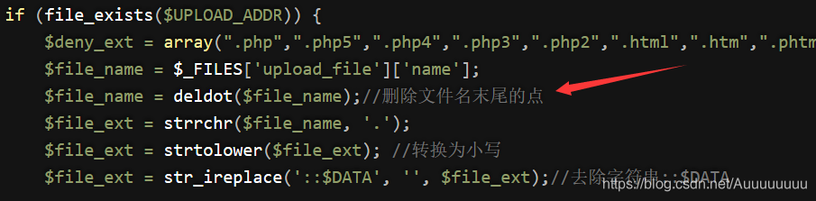 这里没有过滤 ::$DATA 利用 Windows文件流特性绕过 构造8.php::$DATA 会被保存为8.php